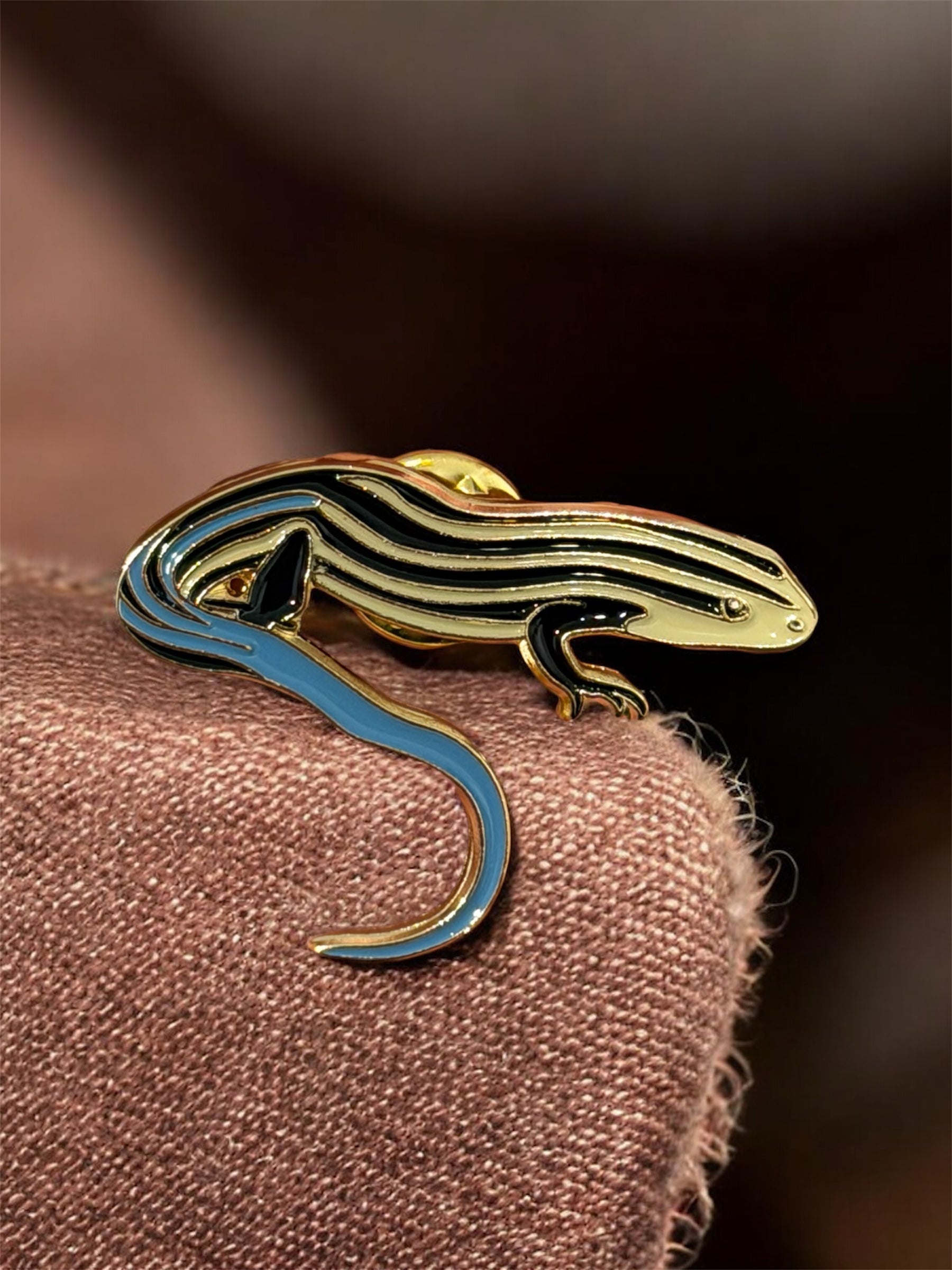 This native five lined skink enamel pin is the perfect accessory for hats, bags, or anywhere you want to show off your love for these beautiful lizards. Made with high-quality enamel, it is a durable and eye-catching addition to any collection.